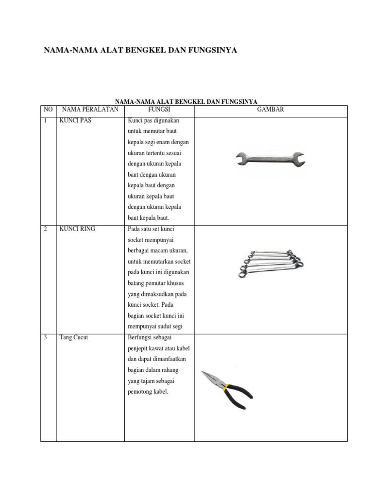 Doc Nama Nama Alat Bengkel Dan Fungsinya Ardi Pw Academia Edu